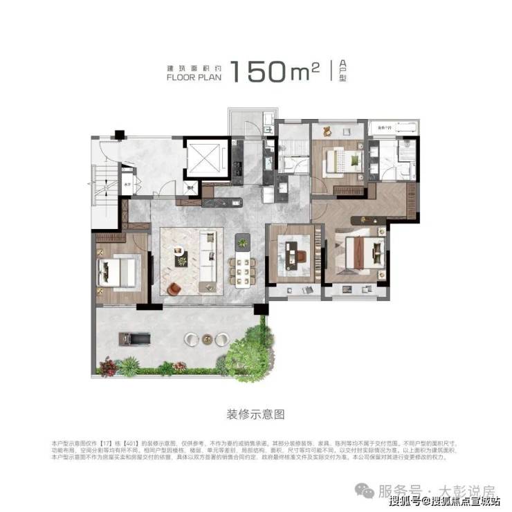 建筑面积约150㎡起,皆一梯一户大平层+约30-50㎡墅级空中庭院,比平层别墅化,比别墅人性化。