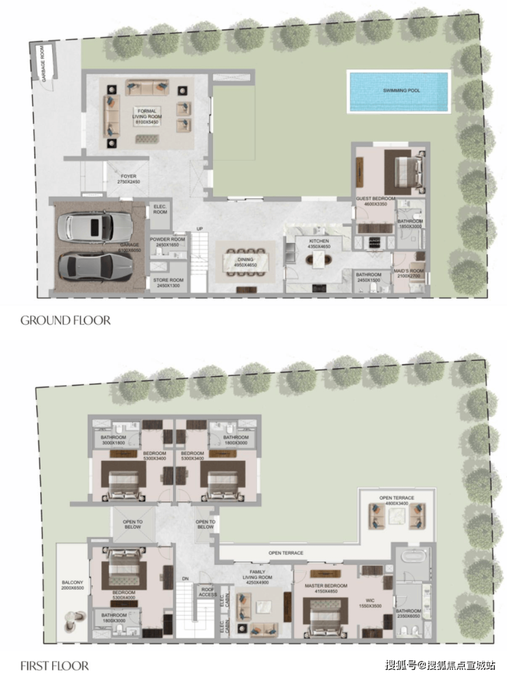 主体结构:G+1层(私人泳池和花园)