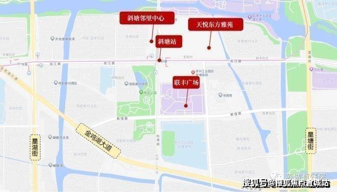 背依斜塘老街时尚街区,紧邻邻里中心,向东约1km(一站地铁)奥体中心,向西约1.5km邻瑞广场山姆超市、向北约2.5km圆融时代广场、久光百货、IFS苏州国际金融中心。沿中新大道与金鸡湖隧道直达苏州中心。