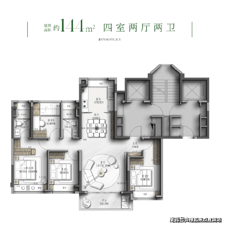 户型:主推建面约114-190㎡精装3-4房,其中114㎡三房南北通透,双阳台设计;126㎡三房有5.9米大阳台;190㎡四房尺度宽敞。