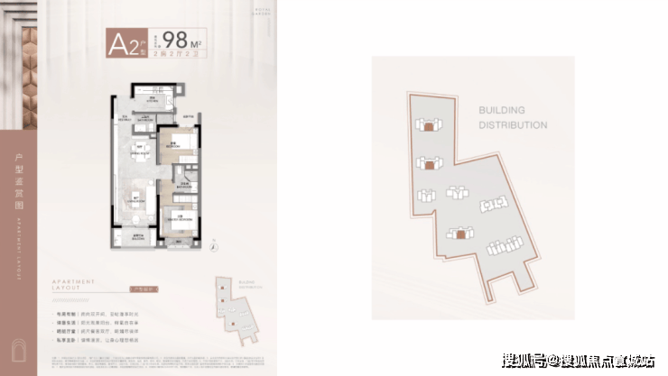 户型选择:2-4房,得房率75-79%,主打100㎡左右户型。
