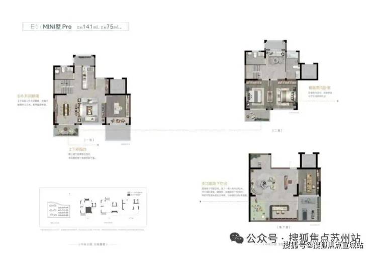 叠加141㎡户型图:(四室两厅四卫)中上叠没有地下室,下叠141+75平(地下室)
