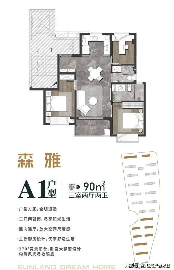 ☑️☑️森兰·航荟名庭售楼处电话:400-8123-224☑️☑️建筑面积约90㎡三室两厅两卫