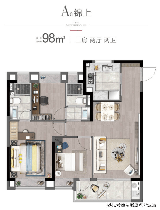 深业·深安上居,主力户型有建面约88㎡三房两厅一卫和建面约98㎡三房两厅两卫。