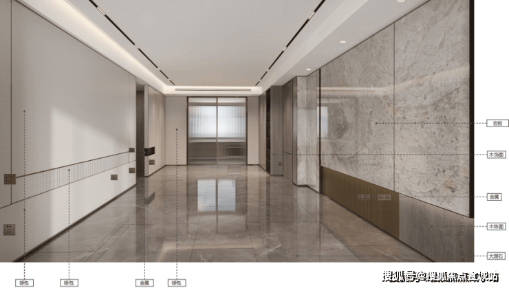 从最新曝光的样板间效果图来看,这个项目在设计上用了不少心思,采用岩板、木饰面、金属材料、大理石和艺术玻璃等材料,别具一格,都展现出了不俗的品质和潜力。