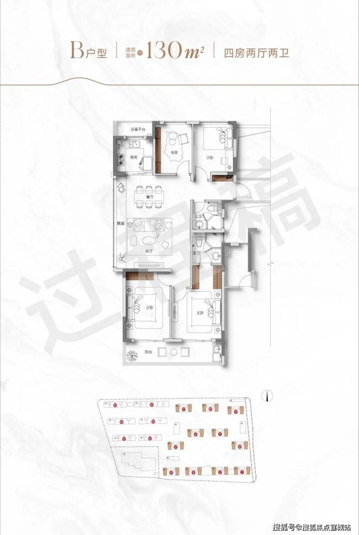 如果你想要舒适度进阶,也可以考虑边套建面约130方四房两厅两卫户型。