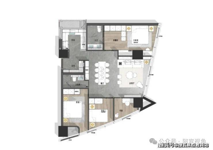 主卧东面采光,宽奢套房设计,独立卫生间双面盆设计,超大衣帽间配置;