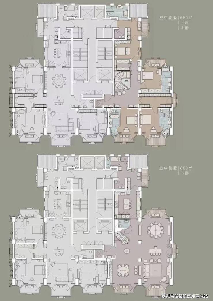 住宅部分全部大平层(复式)设计,单套面积约370-1500㎡,全部精装交付。