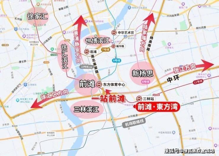 ②通勤升级:项目位置上更靠近中环和前滩,周边五轨环绕,与11号线三林站直线距离仅约200米,1站直达前滩;
