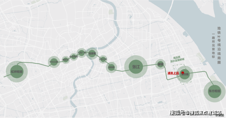 展开地图不难发现,整个上海的核心交通枢纽(虹桥+浦东机场),顶级商务CBD(南京路、陆家嘴、人广、静安寺等),和高尚住宅区(西郊、碧云、唐镇)全部都被2号线串联起来。