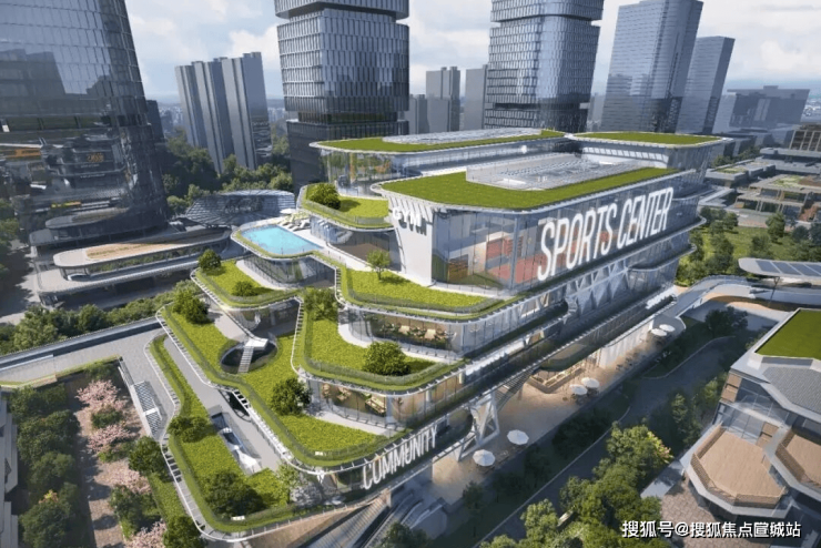 还有九年一贯制的学校及层层退台设计的邻里中心。前者将由保俶塔申花实验学校领办(期房不承诺学区)。后者则包含了泳池、农贸市场、文化活动中心、剧场、健身中心、社区服务中心等功能。