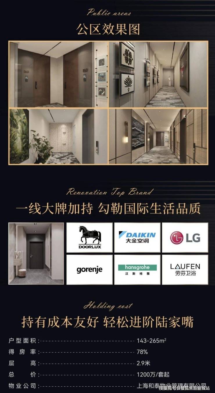 户型与价格:户型面积约为 143-265㎡,涵盖 2-4 房,5 梯 10 户设计,可销售套数为 10 套,精装修交付,销售总价 1200 万 / 套起。