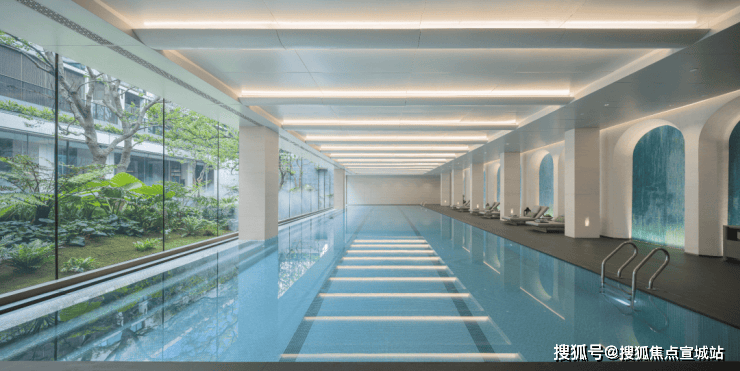 总计约1300m²的殿堂级会所。恒温泳池、健身房、影音室等生活场域,早已超越功能本身。恒温泳池旁,背景墙由于昭大师创造,深邃的艺术氛围,带来度假般的松弛体验。健身房的落地窗外即是园林景致,运动时亦能与自然艺术相拥。此刻,会所已不再是单纯的社交空间,而是艺术生活的沉浸式剧场。