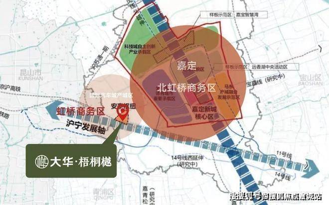 交通配套:距 11 号线嘉定新城站约 1.5 公里,沪嘉高速入口 3 公里,S6 沪翔高速 5 公里,未来还有嘉闵线延伸段规划。