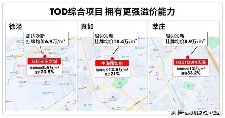 相比普通楼盘,TOD综合项目本身也有较强的溢价能力,莘庄天荟、万科天空之城等TOD项目都已给出有说服力的结论。
