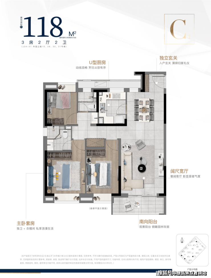 (本户型图为“世界顶科社区·玖海云天”29号楼29单元1201室的装修示意图,仅供参考,不作为要约或销售承诺。户型分布图仅为户型面积段示意,楼栋比例、位置关系与实际存在差异,仅供面积段选择示意参考。其装修、家居、陈设等不属于交付范围,也并非交付标准。不同户型的面积尺寸,功能布局,空间分割等均有不同,相同户型因楼栋、楼层、单元、房号等差别,局部结构、朝向、面积等也可能不同,具体以政府最终审定的图纸和销售合同为准。有效期至2023年7月。)