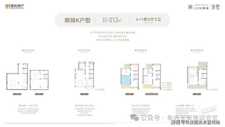 建面约213㎡户型:地下会所:约5.3m双层挑空,幽静大气,藏纳生活的无尽诗意。专梯归家:户内私属电梯,约6.4m挑高,际会层峯排场,共享家族聚会。直面公园:南向阳台直面公园绿境,北向露台,可改造为空中花园。总统套房:顶层主卧套房以「总统套间」礼制精筑,演绎隐奢仪式生活。