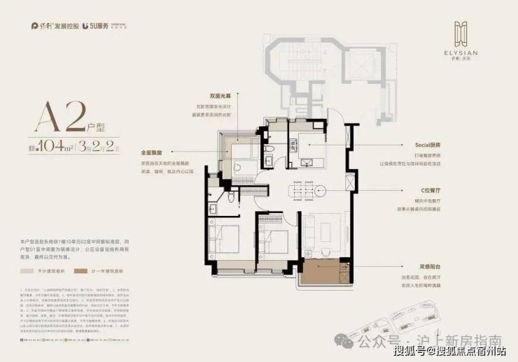 主力户型:104-135㎡三房至四房,少量170㎡以上大平层 。