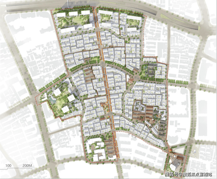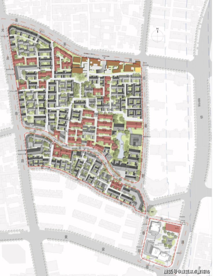 所以实施方案设计分散成三个大组团,「绿发新梓园」就是乔家路A地块。
