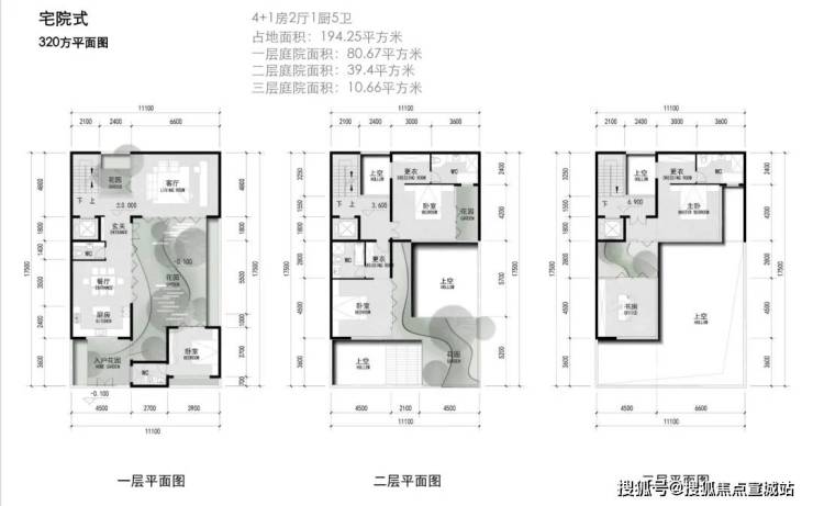 建面约290-360㎡宅院式合院