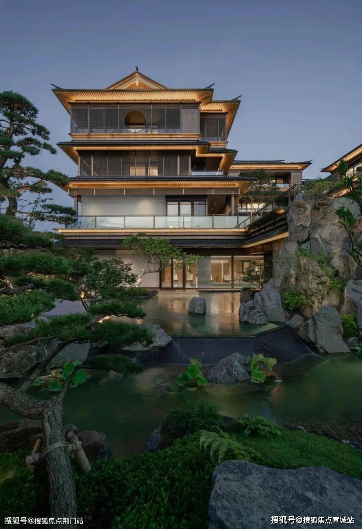 设计以中国古典园林狮子林为原型,在22#“泉香”构筑出了一处回环曲折、层次深奥,以水为主题的“层叠游园”式官邸大宅,立体化呈现园林空间的曲直、疏密、幽旷,以期达到“游目足以骋怀”的效果。走入其中,三种递进景别层次:湘湖的群山大湖为远景,庭院飞瀑与巍峨建筑为中景,山水松石为近景。