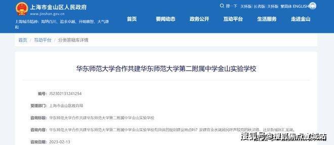 今年二月,金山区政府与华东师范大学合作共建的九年一贯制公办学校——华师大二附中金山实验学校,目前双方已经签约准备建设,其位置就在汇龙湖公园东侧。