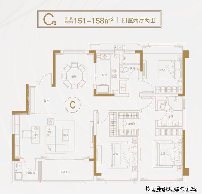 建面约151-158㎡四房两厅两卫