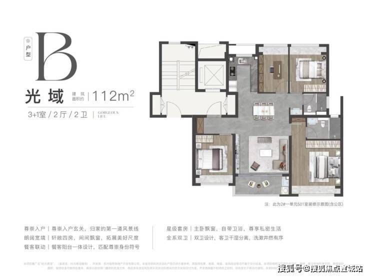 哪怕是最小的约90㎡也做到了3房2卫,三开间朝南、全屋3个大飘窗赠送、开敞阳台,客卫干湿分离、U型厨房…堪称满分上车户型!