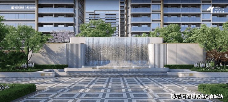 很多楼盘水池铺的都是瓷砖马赛克,但它却用上了意大利卡拉卡白大理石,将池水衬出梦幻的蒂芙尼蓝。池边摇曳着油橄榄树、造型紫薇,高级感丝毫不逊现在那几个网红豪宅。