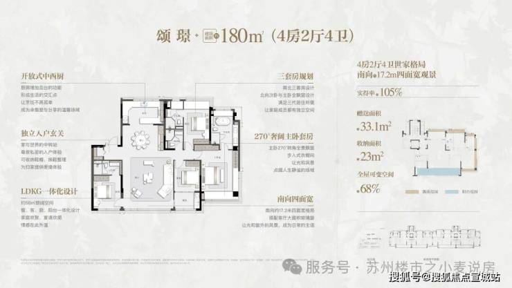 全包围式附赠(阳台/飘窗), 实现赠送率最大化,高实际得房率(98.7%-105%) ;