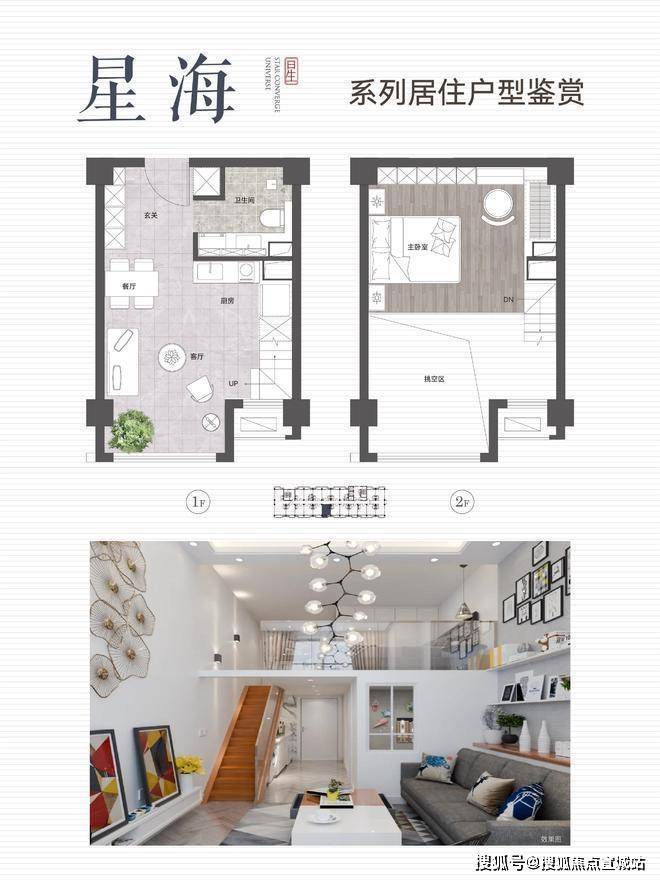 产品类型:6米挑高LOFT(苏州唯一现房)及4.5米挑高公寓,主力面积36-38㎡,得房率约75%,隔层后实际使用面积可达74㎡