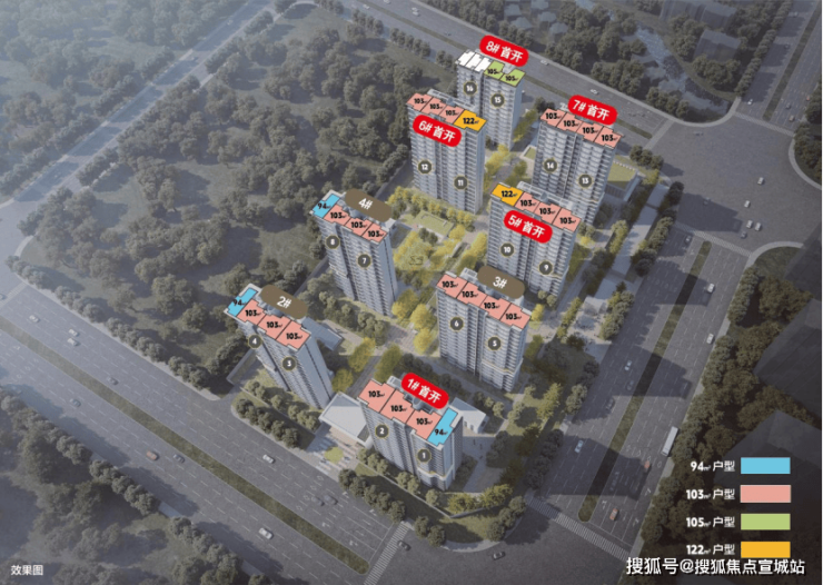 户型信息:主力户型为建面约 94-122㎡的 3 居室,包括 94㎡3 室 2 厅 1 卫、103㎡3 室 2 厅 2 卫、105㎡3 室 2 厅 2 卫、122㎡3 室 2 厅 2 卫等户型。