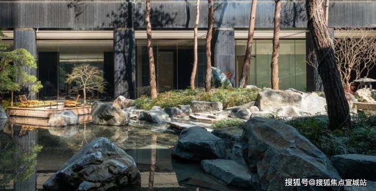 “为我一挥手,如听万壑松”,李白清越宏远的词句在下沉庭院上演。激昂的水瀑还原着自然的清丽,遍寻全国而来的松树,伫立四季葱茏。“置石”是日式造园的灵魂,近180年历史的植弥加藤也尤为擅长,百吨六方石诉说远古的文明,一方“镇院之宝”翡翠原石,呼应庭院的珍贵,为璀璨生活埋下伏笔。