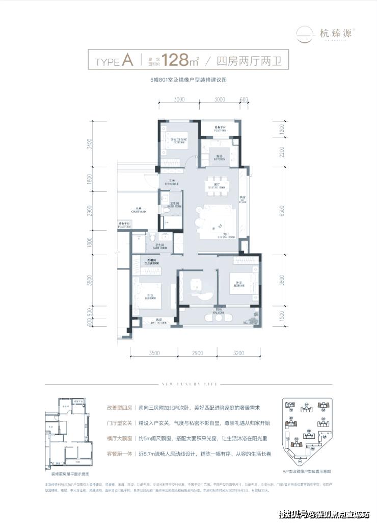 128㎡四房两卫:7.8米横厅,全景落地窗,动静分区明确