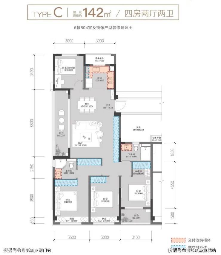 建面约142㎡改善大四房,采用大尺度边厅设计,进一步放大了阳光平权的优势;270°环景视野,提升居家无界的生活质感;南向三卧室+约6.6米边厅观景大阳台,与客餐厅无缝对接,让家人在餐饮娱乐之余,观赏窗外美景,尽揽四季风景。