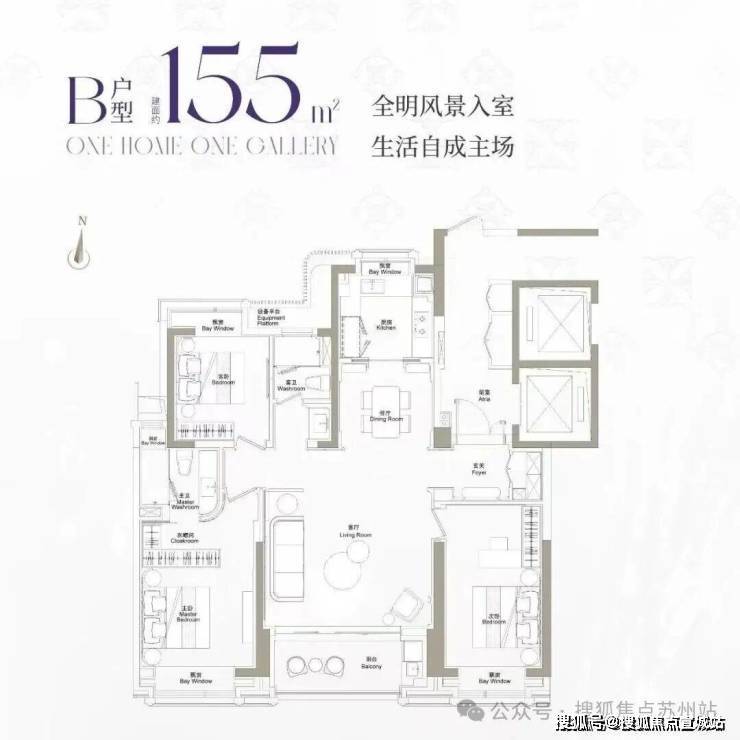 近全飘窗设计,扩展了生活的尺度感;主卧豪华套房设计,兼顾私密性与居住舒适度!