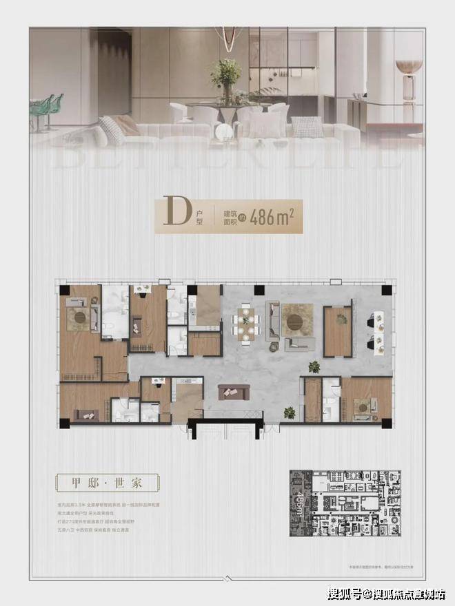 主力户型:建筑面积约 241㎡的 3 房 3 卫户型,以及建筑面积约 486㎡的 5 房 6 卫户型。