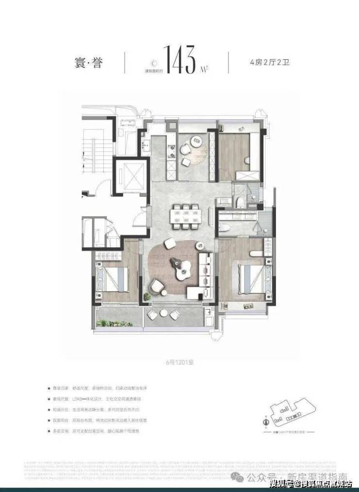 洄游式270°采光大横厅亮点满满,北向飘窗可升级为全落地窗,搭配东面270°景观阳台,形成环幕通透格局,将苏州河景与社区绿意尽收眼底,这一“端厅式设计”在约143㎡面积段实属罕见;三卧室朝南的“平权采光”设计,则精准匹配了二胎或三代同堂家庭需求。
