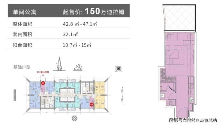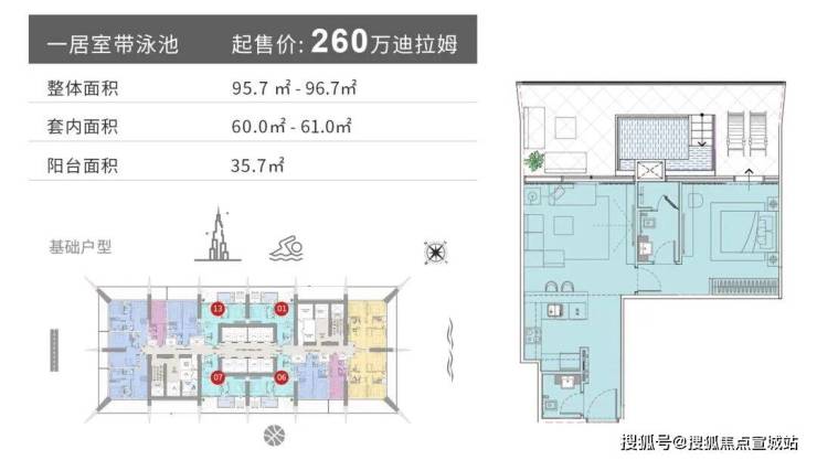项目户型丰富,从刚需Studio到顶豪Penthouse全覆盖,无公摊面积,每户标配免费停车位,部分户型带私人泳池,满足不同人群需求,价格区间跨度合理,投资与自住适配性极强。
