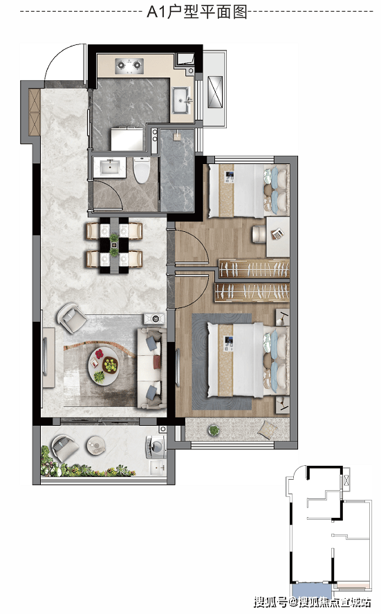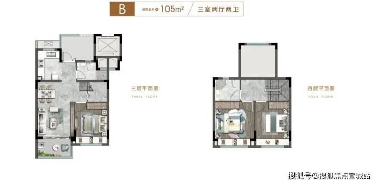 85㎡三房二卫:三开间朝南,6 米阳台,动静分区,适合三口之家。