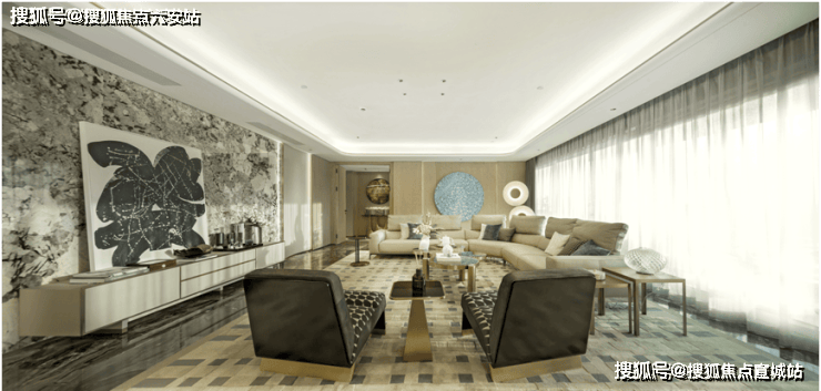 约450㎡“香奈儿”西边套,将原本多见于餐桌和墙面的白金沙奢石,漫铺于双厅地面之上。浅淡得宜的洁白,温润如玉的蜜色,将空间衬得时髦优雅。能眺望钱江两岸的梦幻天际线,“宇宙中心”奥体尽收眼底,也能俯瞰城市霓虹,车水马龙就在脚下。整个中心的璀璨世界定格在落地窗前,像一张巨幅明信片。