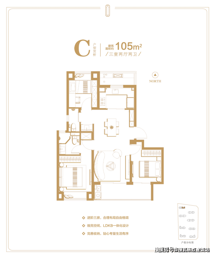 在时间、自然、爱的三重维度下缔造会客、休闲、阳光、亲子、邻里五大主题功能区,即人车分流、沉浸式多功能共享空间、全龄段儿童活动空间、全时运动健身空间、康体养生空间以及宅间花园组团,塑造集智能化科技、人性化设计、全龄段需求为一体的生活方式。
