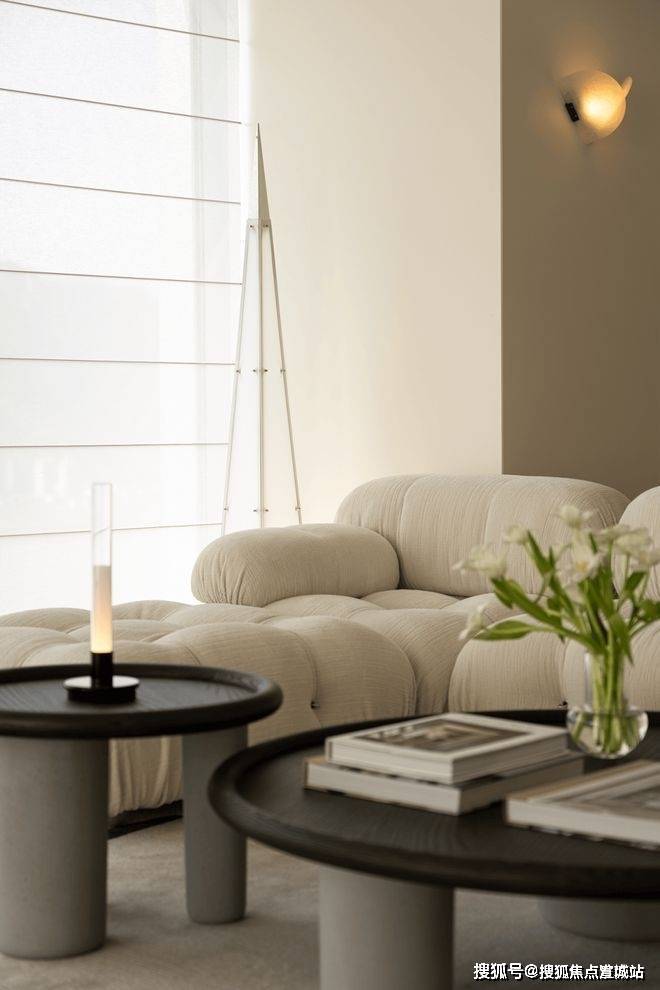 全开放式设计,岛形沙发打破边界,让交流随光影自由发生。午后的光线从侧面洒落,家具被赋予立体的光影层次。