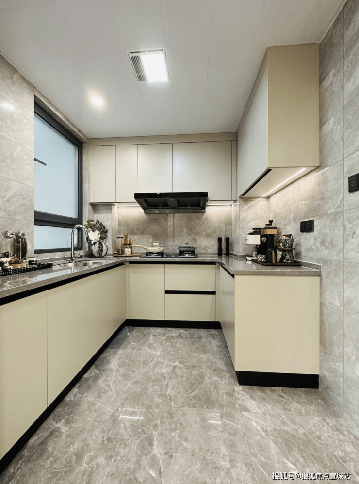 餐客厅一体化的设计,高效合理地利用了空间,还有助于增进家人间的情感交流。u型厨房的设计,动线合理!