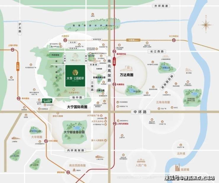 【大华·公园柏翠】位于宝山区康宁路长江西路,属中外环间,项目距离1号线通河新村站约1.4公里,可一线直达人民广场、淮海路、徐家汇、莘庄等CBD;距离“换乘王”之称的18号线康宁路站(规划中)仅约500米