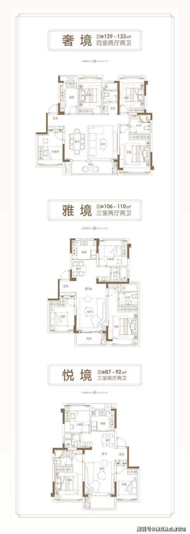 户型:主力为建面90-129㎡三至四居,得房率超80%