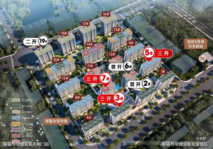 昨日晚间,项目惊喜加推三期预售证,推出3#、5#、7#,共3幢96套房源,面积116-136-172方,均价3.591万/平,总价300万-700万级。