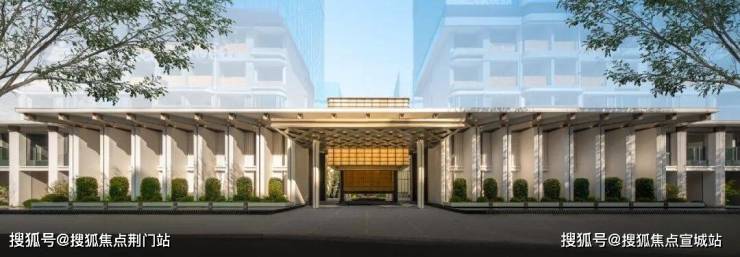 先看项目大门,我们会震撼于超200米宽的酒店式门仪、最高约7米的尺度,惊艳于16根柱廊序列的典雅气质,心仪于紫金琉璃背景墙、玉石纹理的透光材质的浪漫神韵。