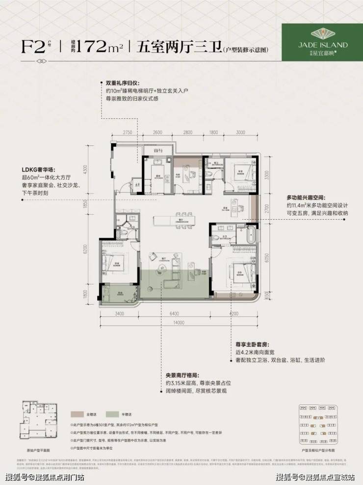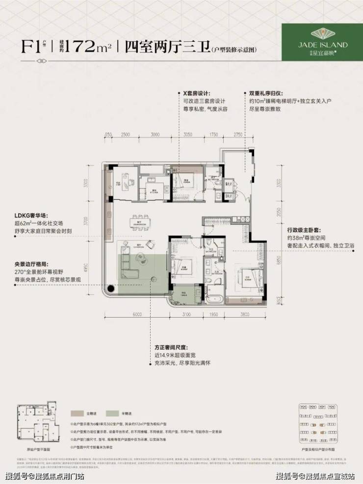 建面约172方户型:改造后实际使用率接近100%,相当于花费同样的价钱,却能享受到约200方的豪宅空间,质价比拉满!