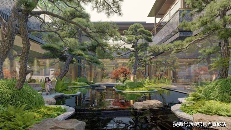 3纵中心花园:分布联排建筑组团中的3纵景观步道,打造中式园境,让归家成为一场穿越风景的旅行
